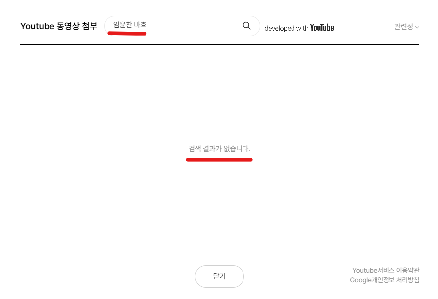 새로운 편집 창이 열리고 유튜브 콘텐츠를 제목이나 주소로 검색하면 해당 영상이 리스트에 나오게 된다. 그러나 얼마전까지 잘 되었는데, 최근에 시도해 보면 아래와 같이 검색 결과가 없다는 안내가 나온다. 피아니스트 임윤찬의 바흐 영상이 없을리가 있는가?