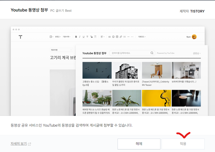 티스토리 플러그인 활용 방법이 다시 가능해지면 좋겠지만 다른 방법도 그리 어렵지 않으니 관련 영상을 많이 연결해 두면 좋을 것 같다.
